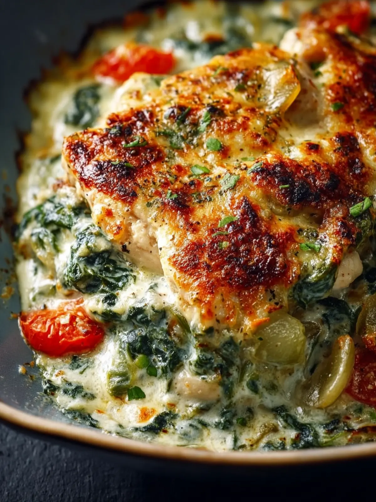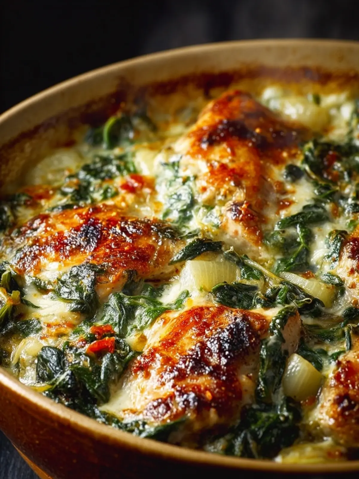 This delicious chicken and spinach casserole is creamy, cheesy, and perfect for a comforting meal.