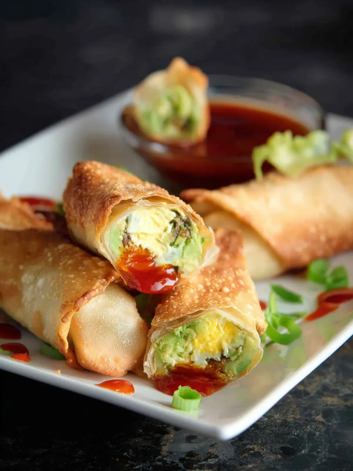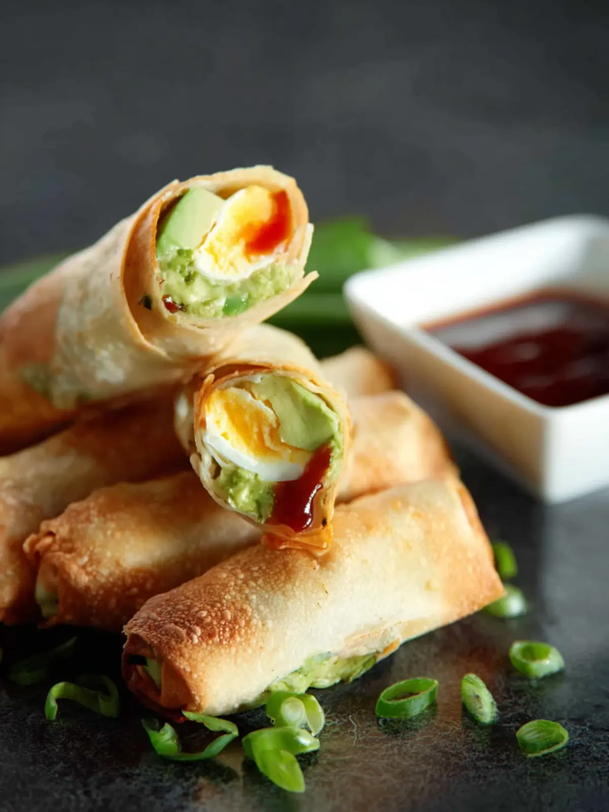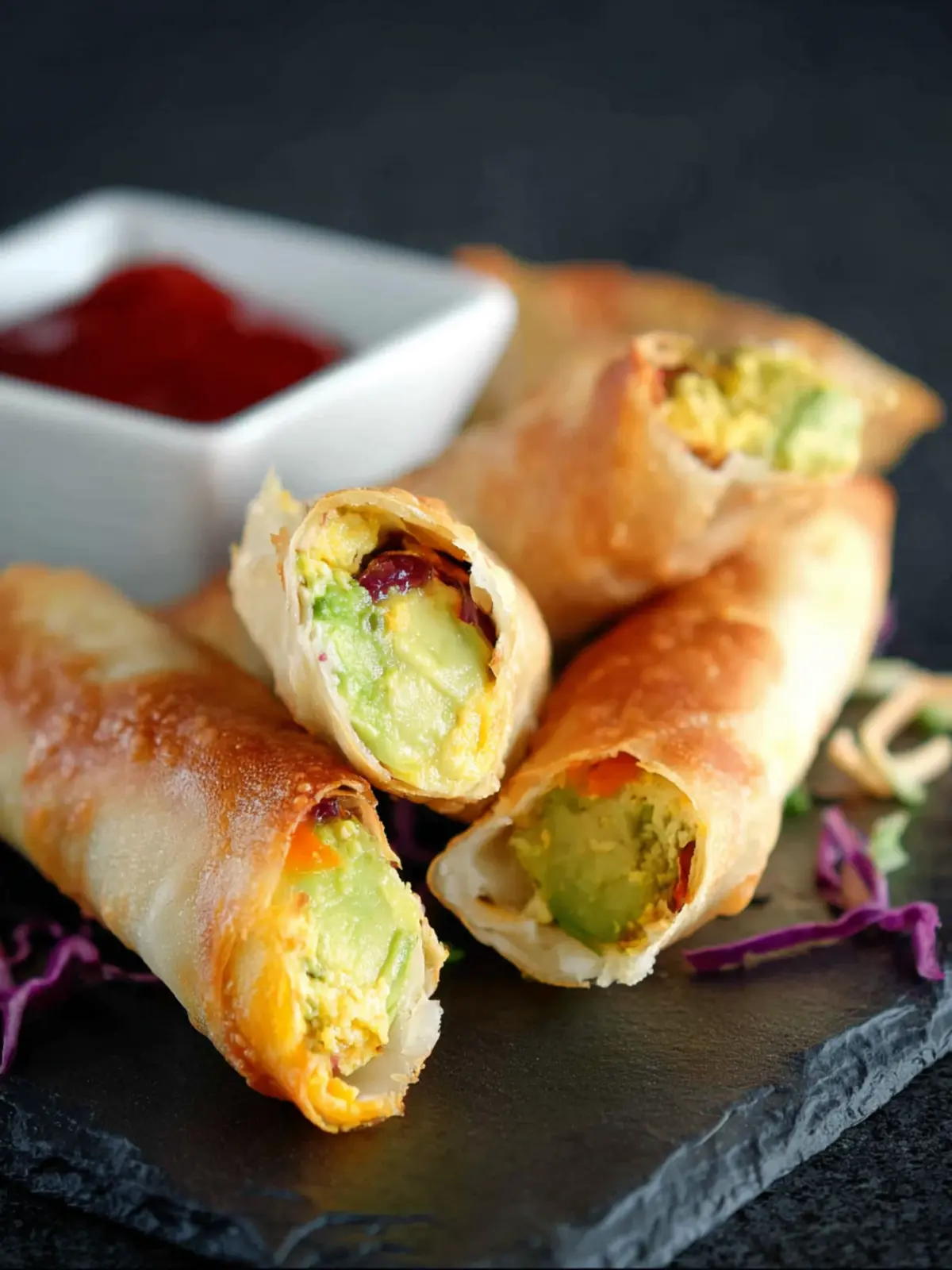 Delicious avocado egg rolls filled with fresh ingredients and baked to perfection.