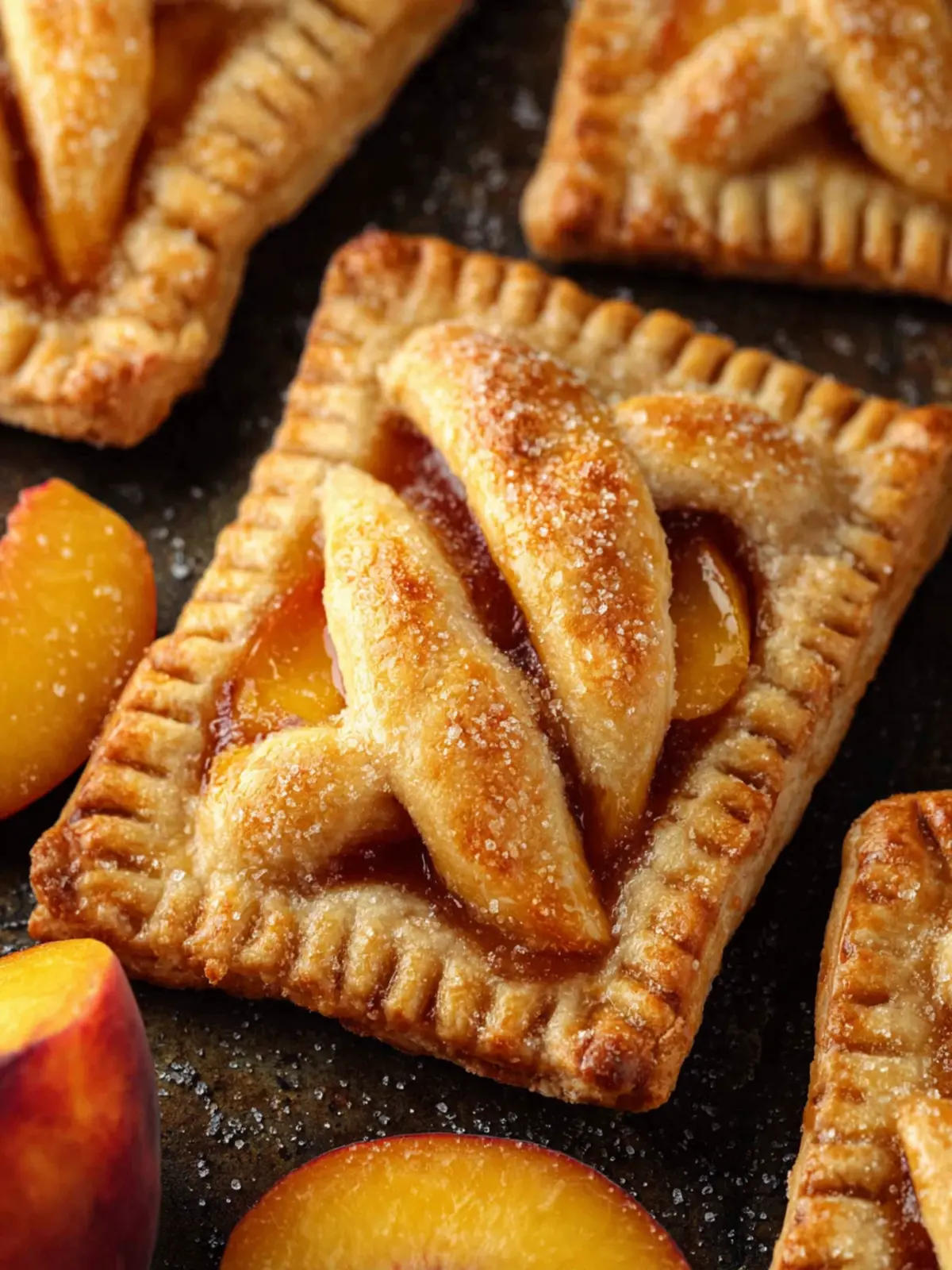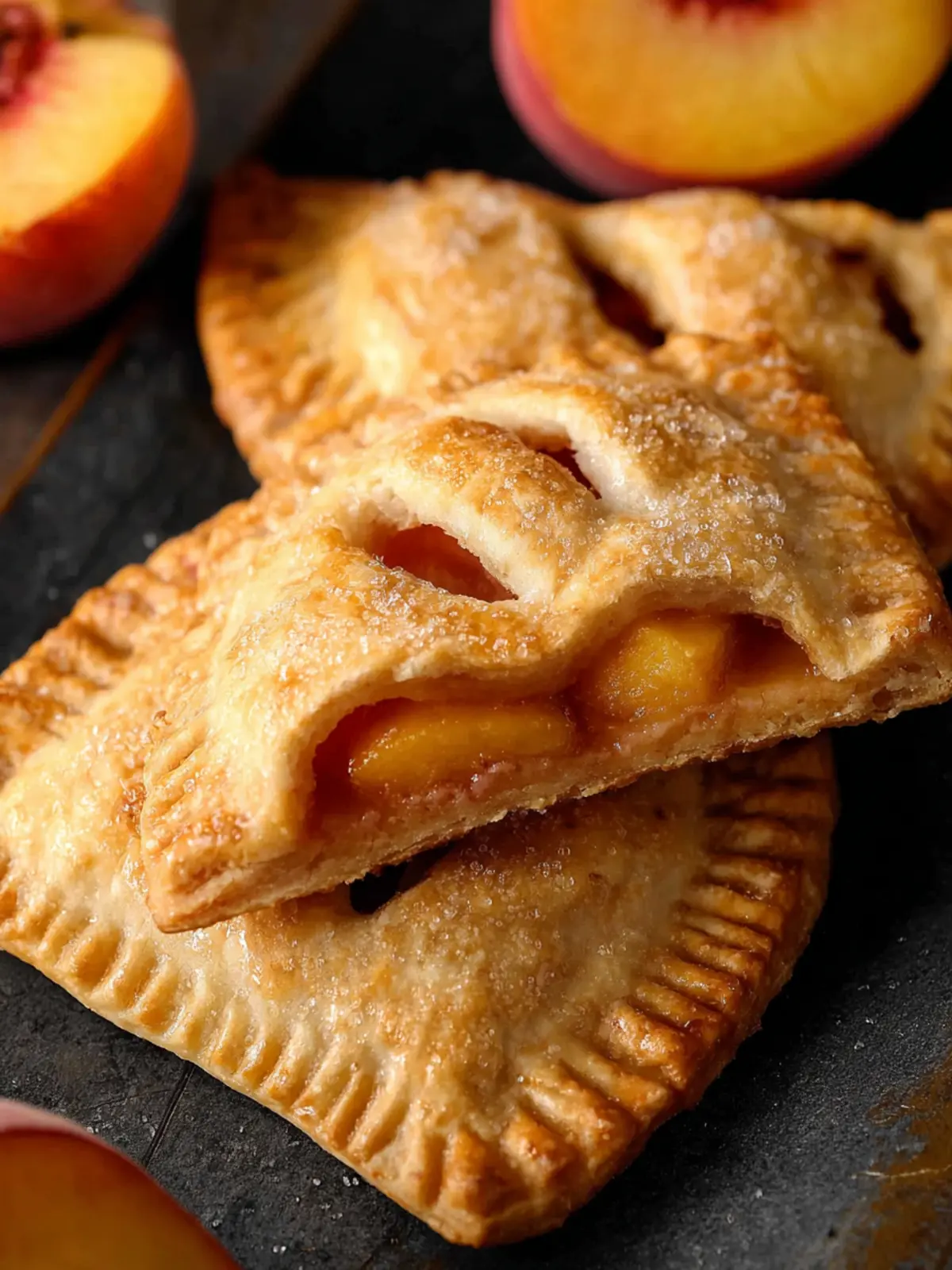 Delicious hand pies filled with sweet peaches and spices, perfect for a dessert or snack.