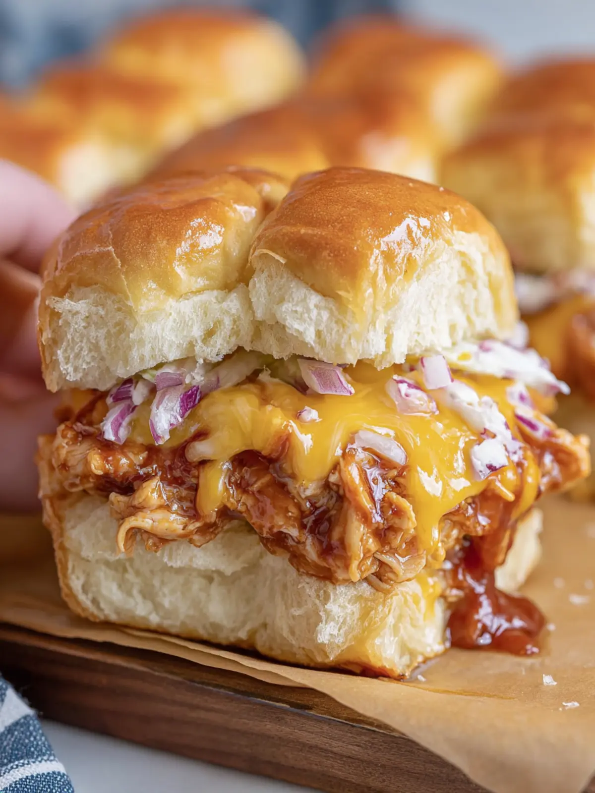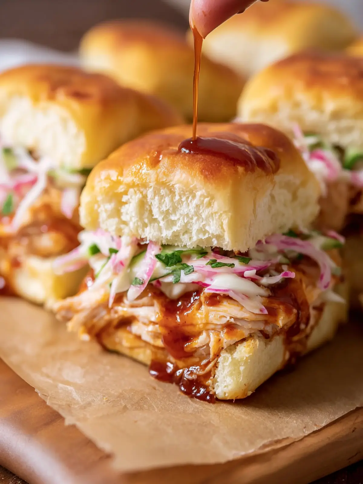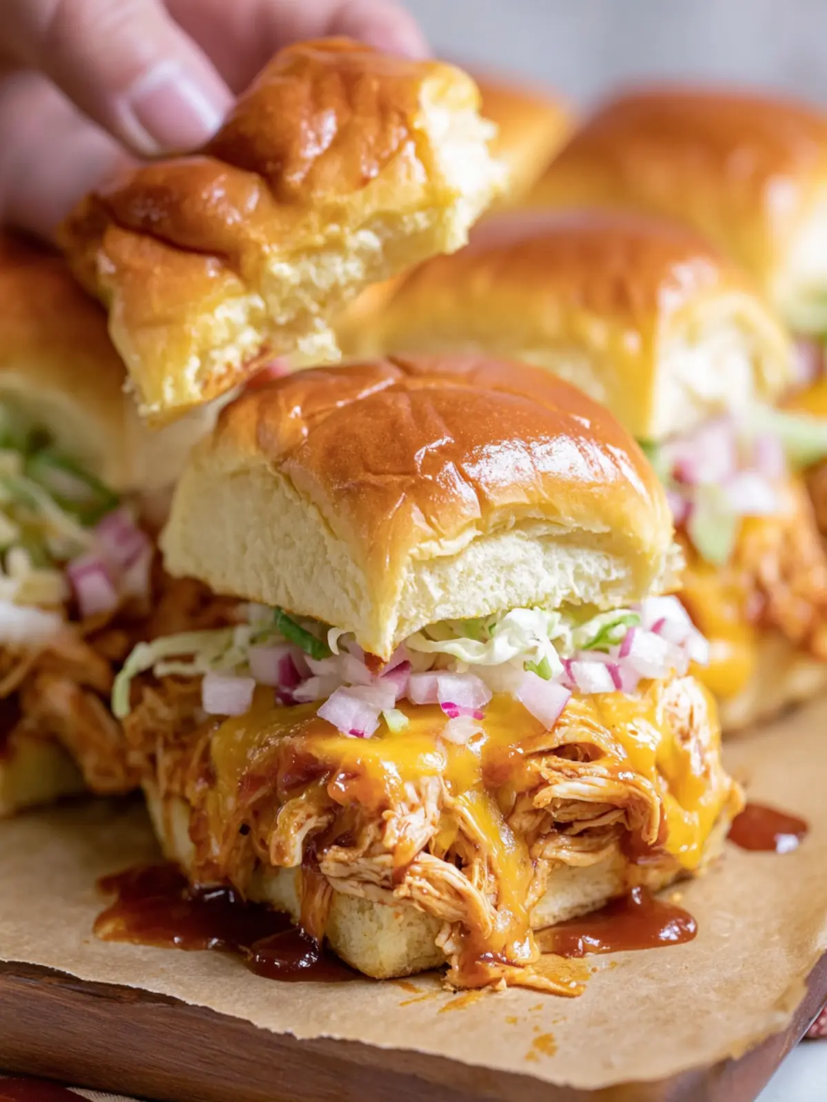 Why not get cheesy? Melt some pepper jack or cheddar cheese over the BBQ chicken before assembling your sliders. A sprinkle of crispy bacon on top will elevate the flavor even further, creating a mouthwatering treat everyone will love.