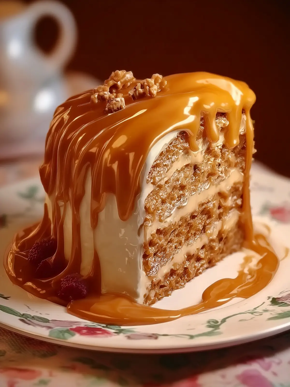 Decadent Caramel Icing: The caramel icing is where the magic happens! Drizzling this luscious topping over your cake adds an extra layer of indulgence, making it an eye-catching centerpiece at any dessert table. The contrast between the moist cake and smooth icing is simply heavenly.