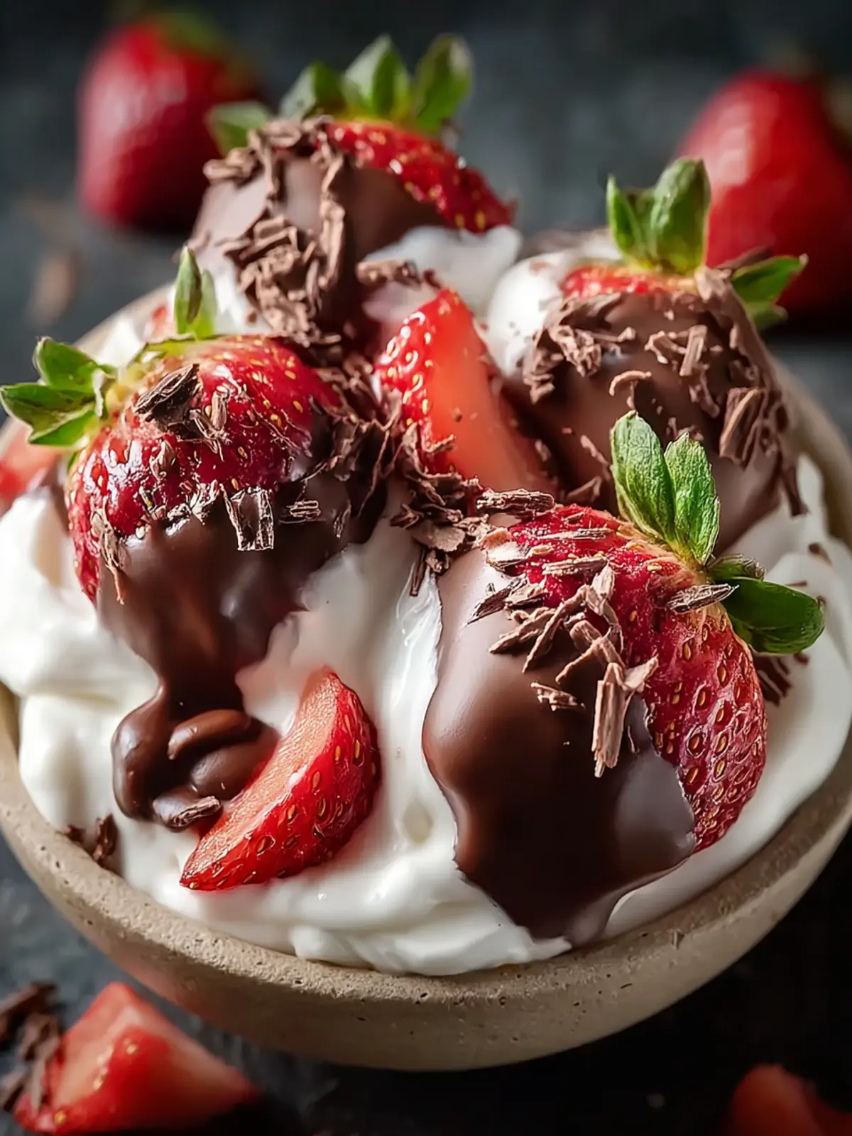 Delicious chocolate-covered strawberries coated in yogurt, perfect for a sweet treat!