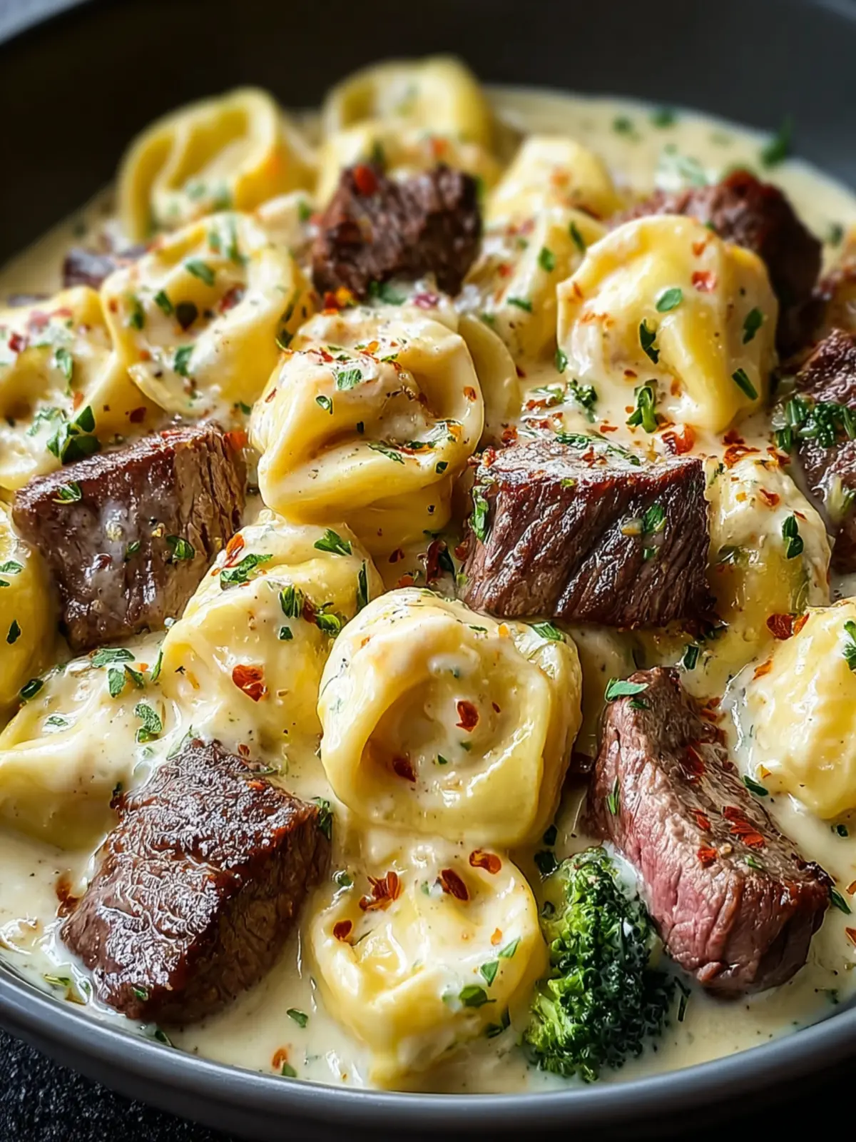 Cracked Garlic Steak Tortellini in Irresistibly Creamy Sauce