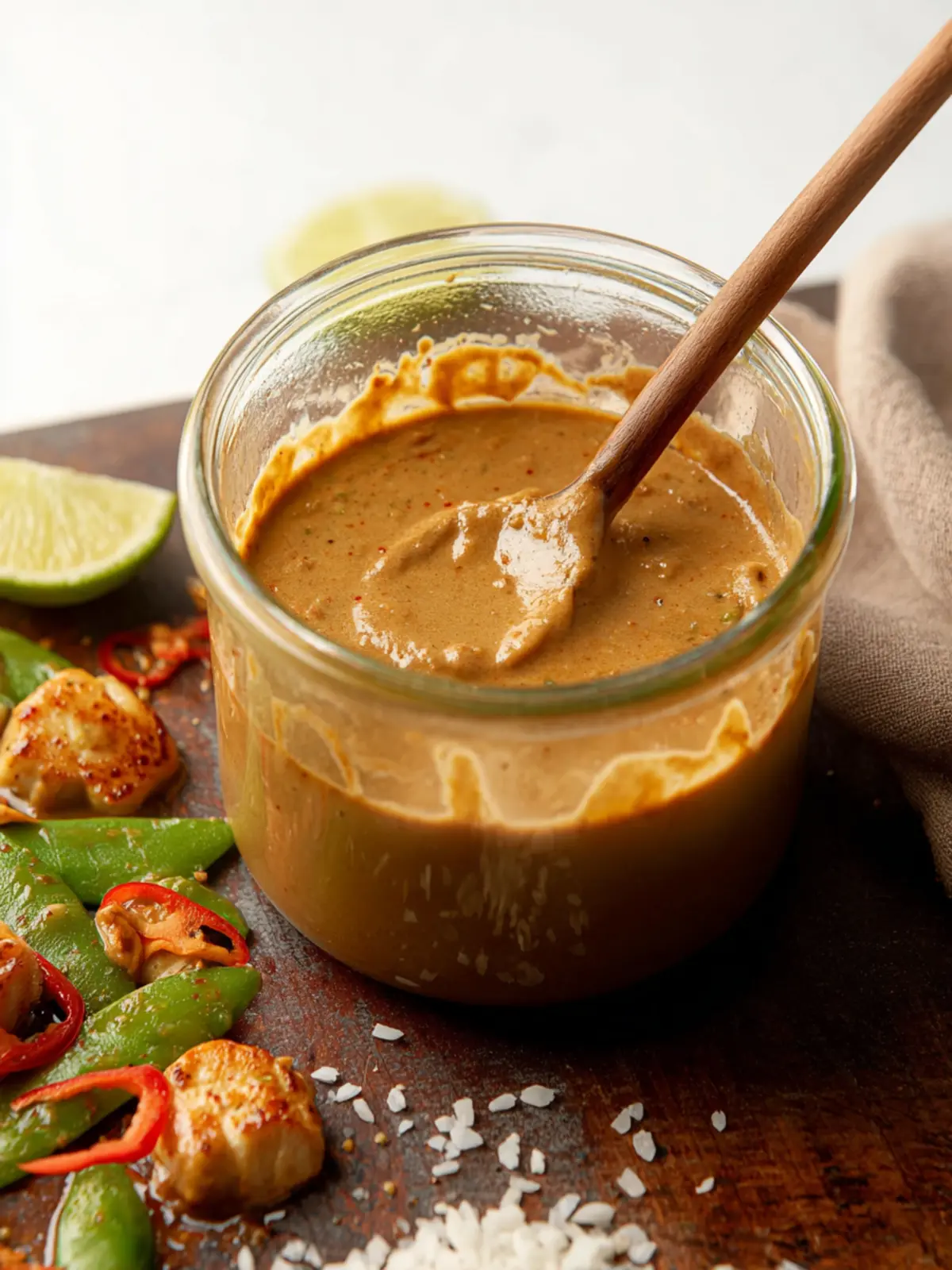 Lime Juice: This brightens up the sauce, cutting through the richness of the peanuts and coconut. Freshly squeezed lime juice is ideal, but bottled works too if that’s what you have on hand.