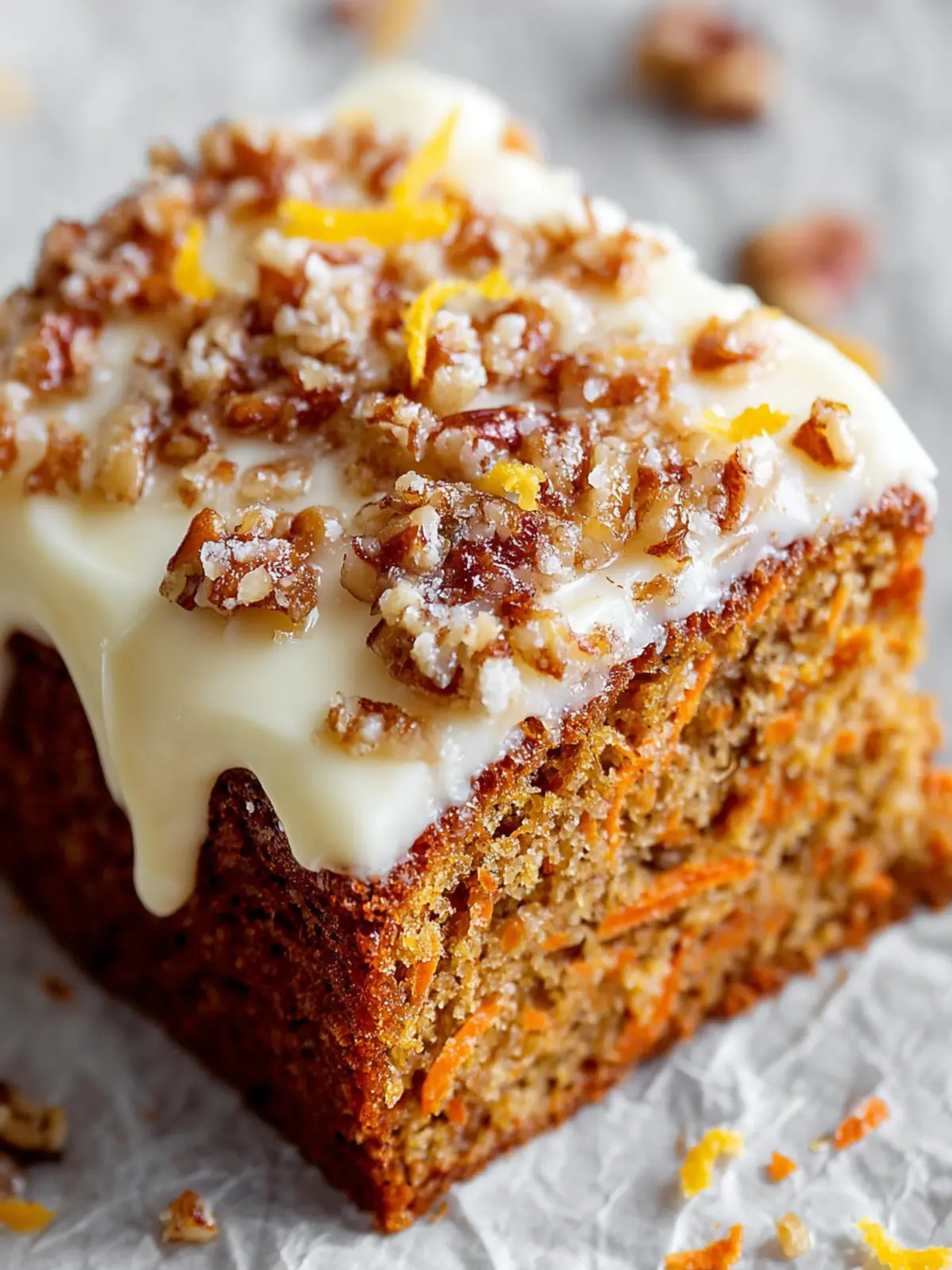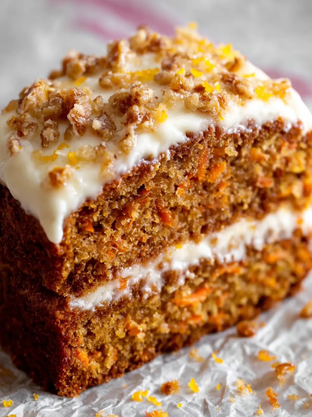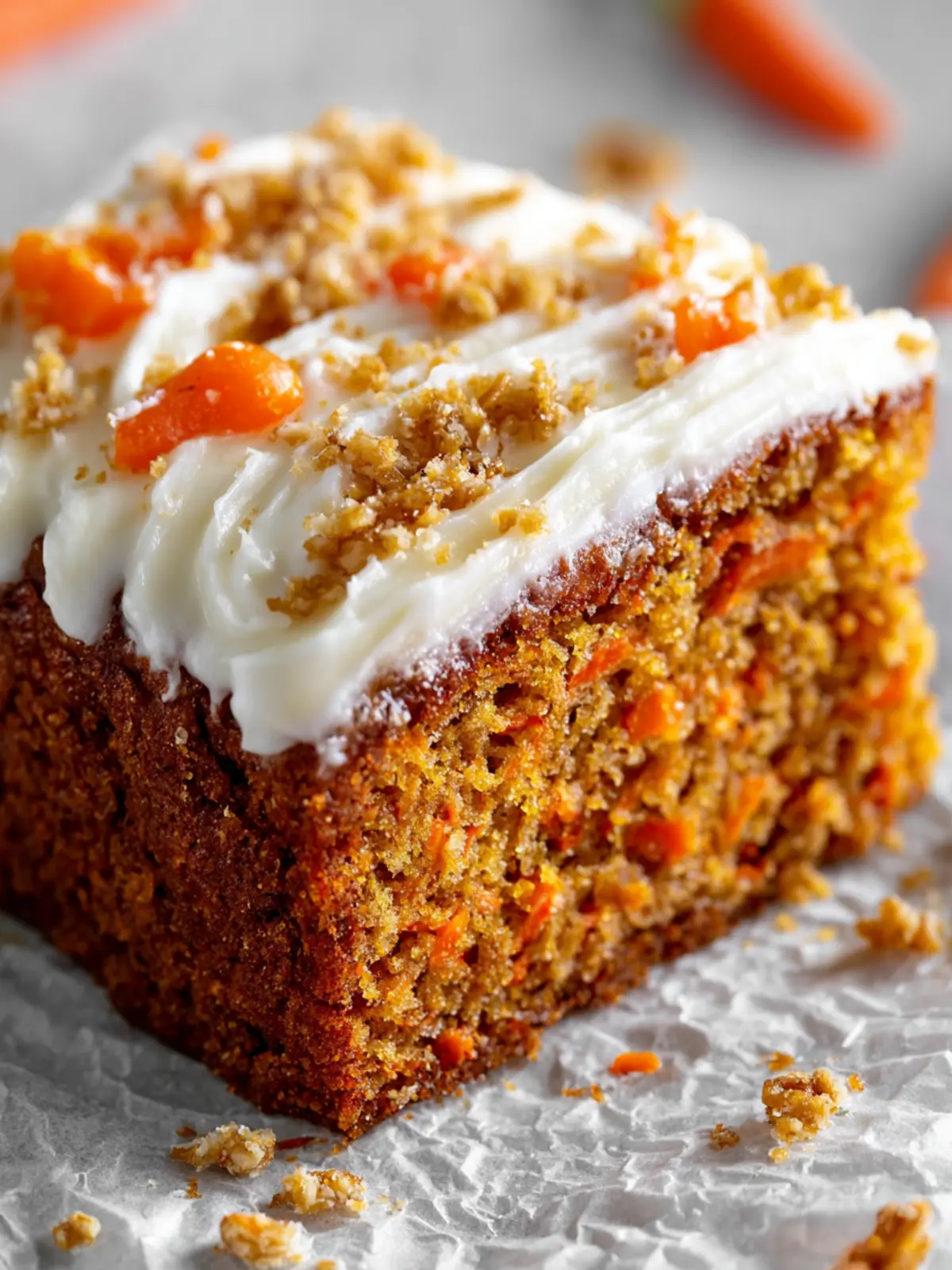 Delicious and moist carrot cake topped with smooth cream cheese frosting.