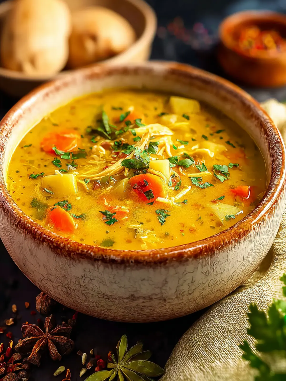 - Crusty Bread: There’s nothing quite like dipping a warm, crusty baguette or sourdough into your soup. The bread soaks up the fragrant spices and adds a satisfying texture.