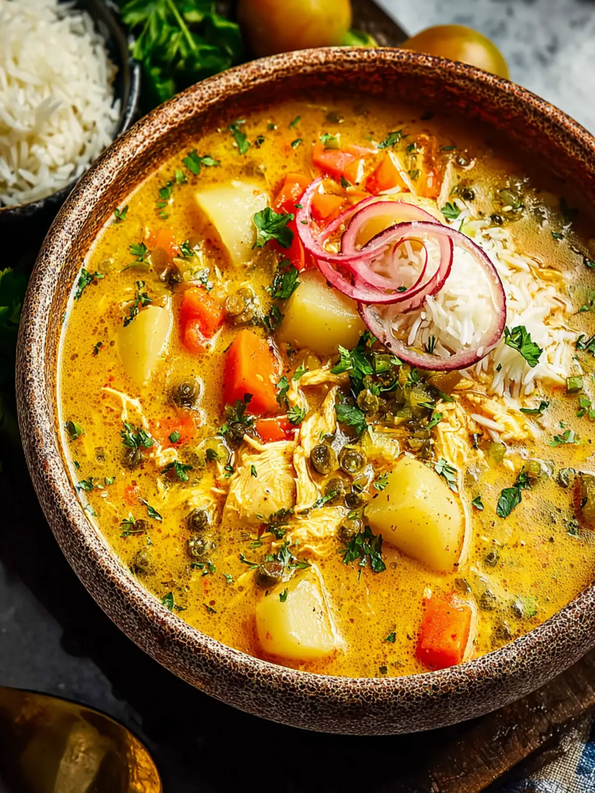 A comforting coconut curry chicken dish packed with lentils and vibrant flavors.
