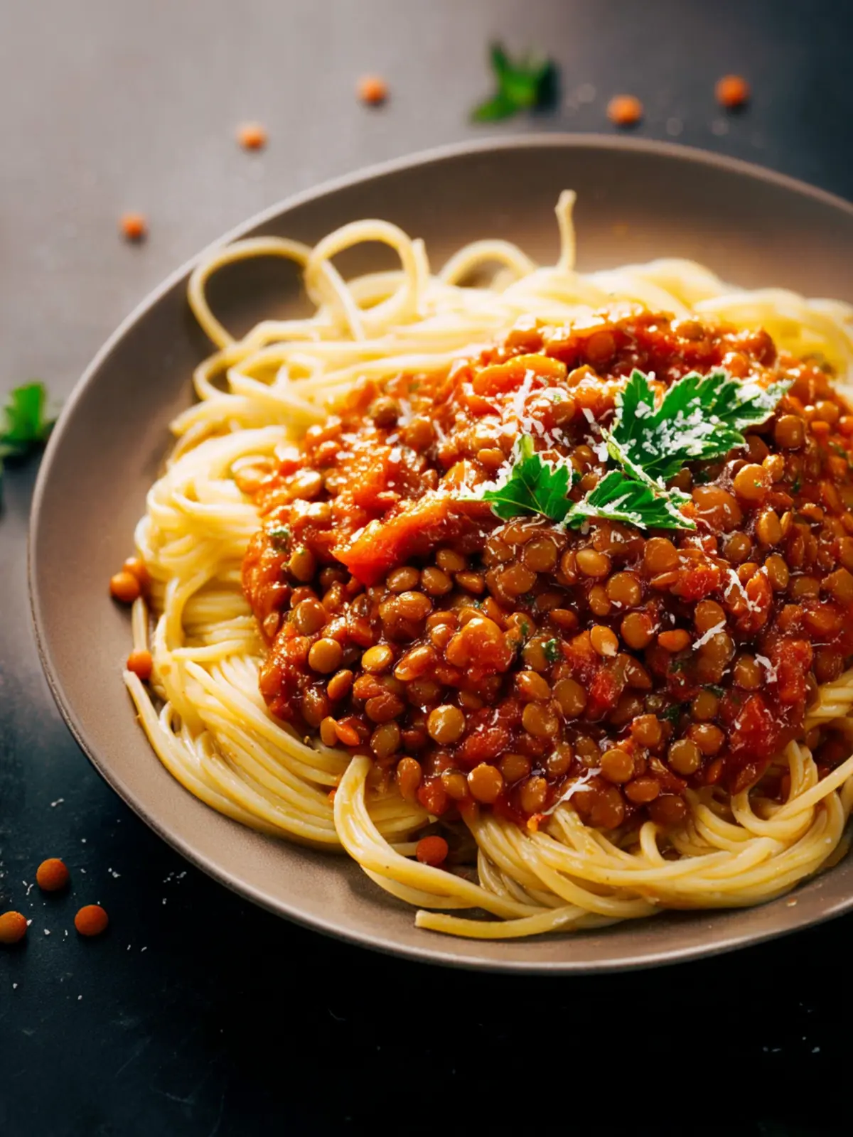 Lentil Bolognese with Spaghetti