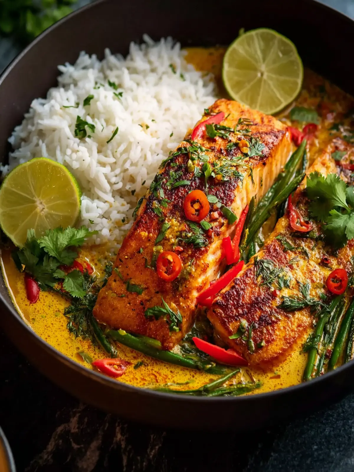 This delicious coconut curry salmon recipe is rich and flavorful, perfect for a cozy dinner.