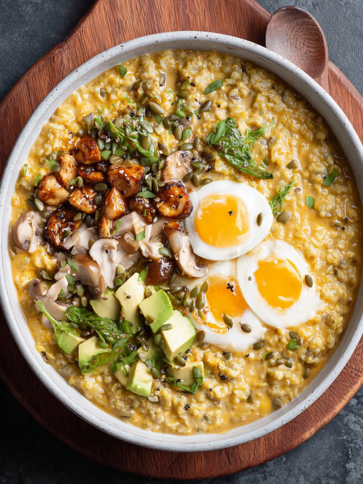 Make your mornings better with a bowl of this savory protein porridge that promises to be both a comfort and a delight. Your taste buds will thank you!