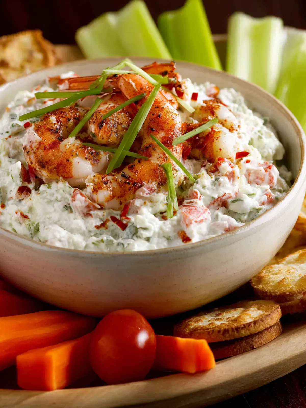 A creamy and flavorful shrimp dip perfect for serving with fresh veggies.