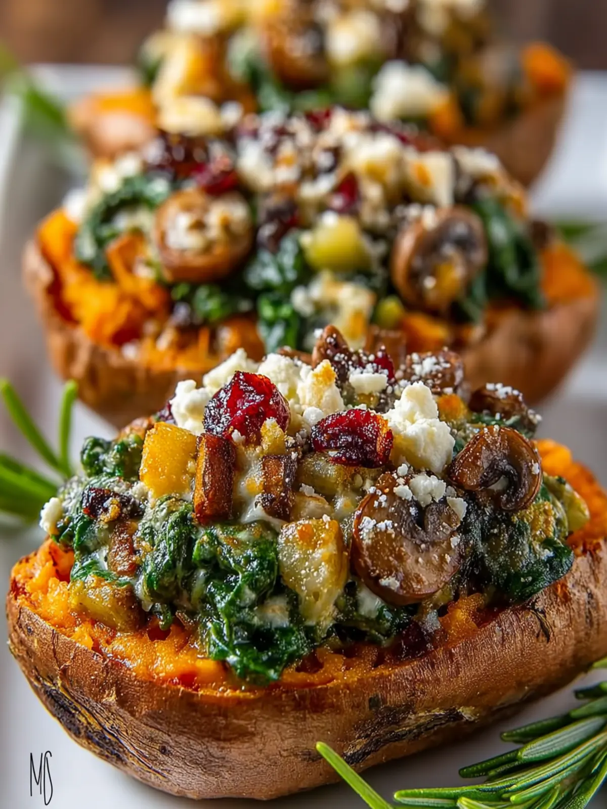 Introduction to Stuffed Sweet Potatoes with Spinach, Mushroom, Feta & Rosemary