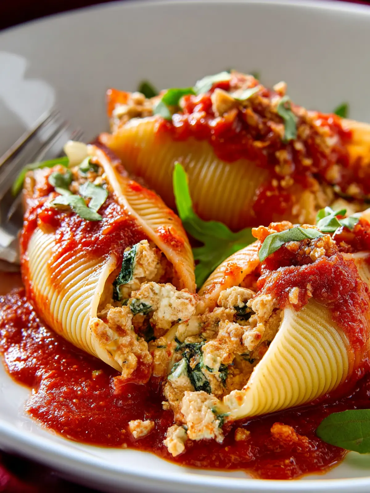 Additionally, the dish is an excellent source of nutrients, packing in protein, fiber, and an abundance of vitamins. This means that not only are you indulging in a hearty meal, but you’re also feeding your body with wholesome goodness. The vibrant tomato sauce draping these shells takes the flavor to a whole new level, tantalizing your taste buds and leaving you wanting more.